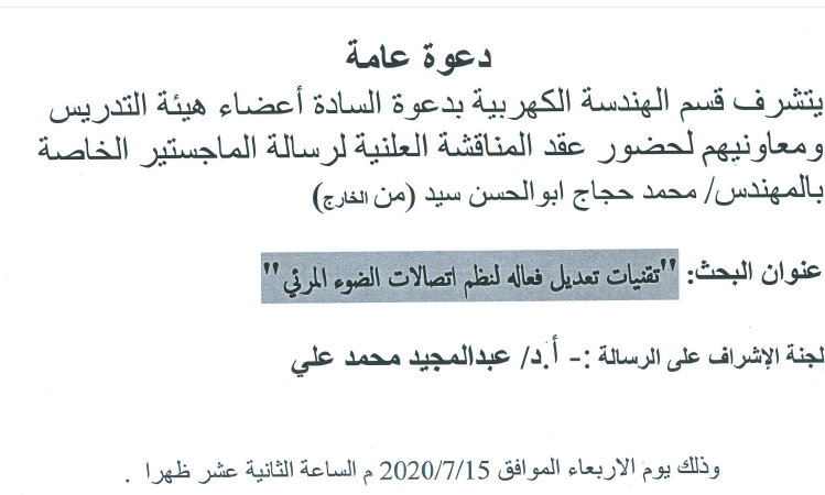 يتشرف قسم الهندسة الكهربية بدعوة السادة أعضاء هيئة التدريس ومعاونيهم لحضور عقد...