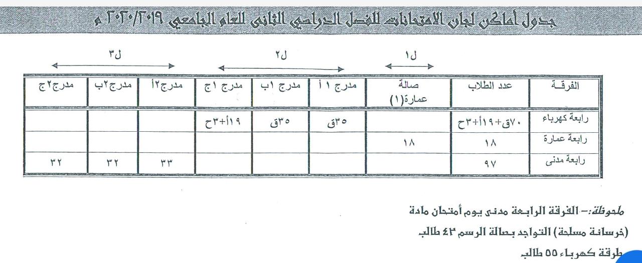 جدول اماكن لجان الامتحانات للفصل الدراسي الثانى للعام الجامعى 2020/2019  ...