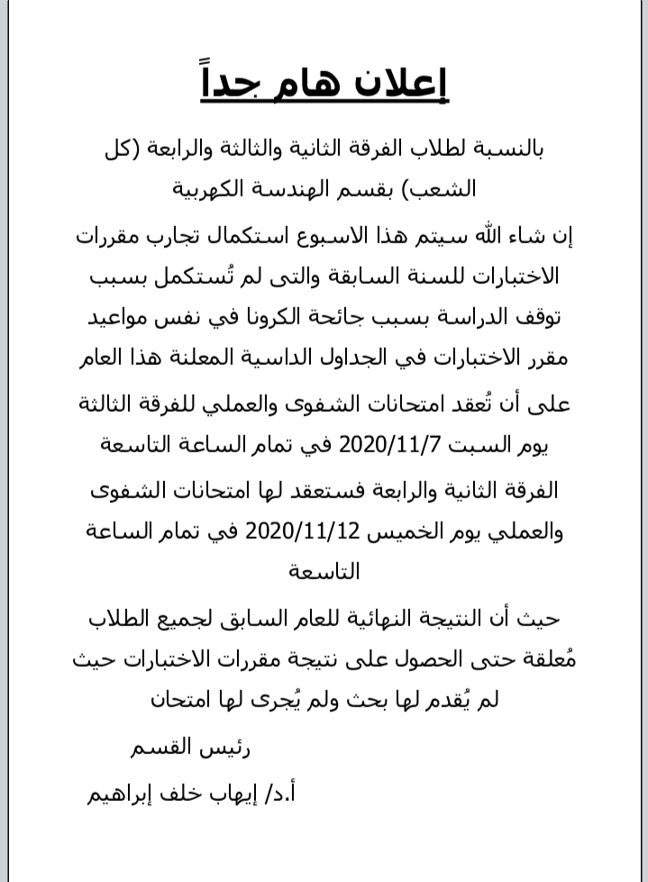 جــــــــدول الفصــــــــــل الدراســـــــــــــي الأول لقســـــــــــم الهنـــدســـــــــة المـــــــــدنيـــــــــــــــة 2020-2021