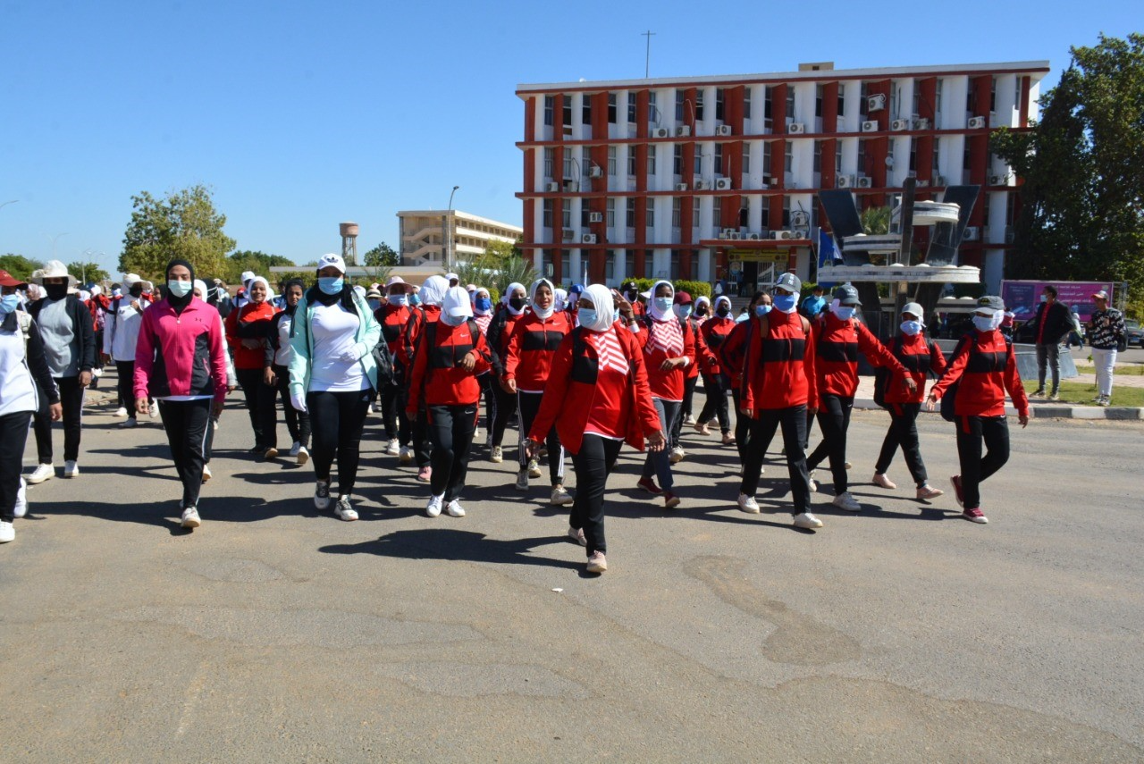 قال الإستاد الدكتور أحمد غلاب محمد رئيس جامعة أسوان اليوم الرياضي للمشي للطالبات...