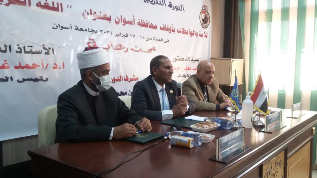 تستكمل اليوم الثلاثاء تحت رعاية الاستاذ الدكتور أحمد غلاب محمد رئيس جامعة أسوان وإشراف الدكتور أيمن عثمان نائب رئيس الجامعة للدراسات العليا والبحوث فاعليات اليوم الثالث لدورة تدريب الأئمة والواعظات بالحرم الجامعي بصحاري. وأكد الدكتور أحمد غلاب علي أهمية التعاون بين الطرفين في تصحيح الأفكار الهدامة والمعتقدات الخاطئة في إطار خطاب ديني مستنير وجاءت المحاضرات اليوم تحت عنوان اللغة العربية وآدابها لمعرفة مدي أهمية مخارج الحروف وكيفية النطق السليم وتاتي الدورة ضمن بروتوكول التعاون بين جامعة أسوان ووزارة الاوقاف والعمل علي تفعيل دور الجامعة في خدمة المجتمع وتقديم الدعم الفني لمختلف الهيئات والمؤسسات . وشدد الدكتور أحمد غلاب رئيس جامعة أسوان علي تطبيق كافة الإجراءات الاحترازية من ارتداء الكمامة الطبية ومراعاة التباعد الاجتماعي وقياس درجة الحرارة حرصا علي سلامة الجميع في ظل مواجهة فيروس كورونا المساجد كما حاضر في الجلسة الأولى الدكتور فريد عبد الظاهر أستاذ الأدب والنقد بينما جاءت الجلسة الثانية عن بلاغة القرآن الكريم والحديث النبوي الشريف واقسام البلاغة من علم البيان وعلم المعاني .