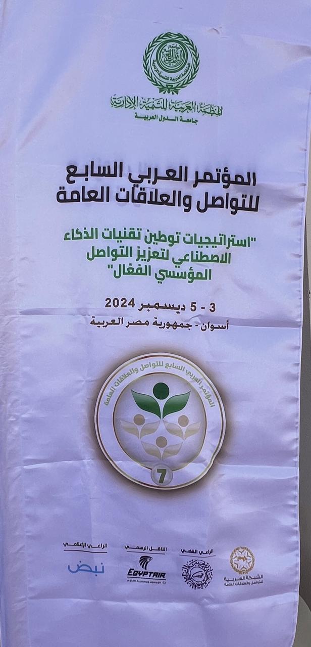 أقيم امس المؤتمر العربي السابع للتواصل والعلاقات العامة “استراتيجيات توطين تقنيات الذكاء الاصطناعي لتعزيز التواصل المؤسسي الفعّال”، بفندق Movenpick – مدينة أسوان – جمهورية مصر العربية، خلال الفتــــرة (3 – 5) ديسمبر 2024م. والجهة المنظمة للمؤتمر هي المنظمة العربية للتنمية الإدارية – جامعة الدول العربية،