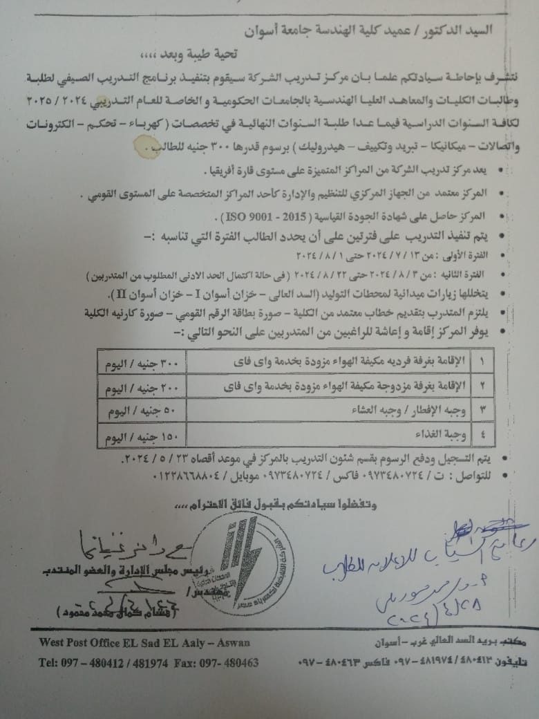 التدريب الصيفى لشركة الكهرباء والطاقة المتجددةBy nagwa / April 30, 2024 يتشرف مركز تدريب شركة الكهرباء والطاقة المتجددة بتنفيذ برنامج التدريب الصيفى لطلبة وطالبات الكلية للعام التدريبى 2024/2025 للإطلاع اضغط هنا