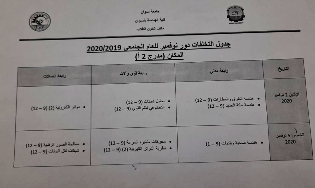 جدول تخلفات دور نوفمبر للعام الجامعى 2020/2019By nagwa / October 14, 2020 جدول تخلفات دور نوفمبر للعام الجامعى 2020/2019